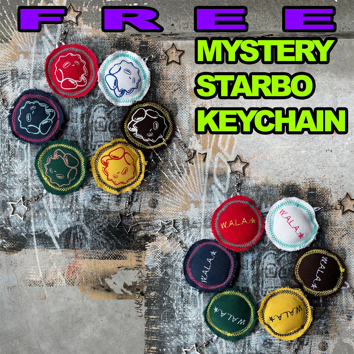 The STARBO Plushie -- made by hand from repurposed scrap denim. Included in this bundle is a FREE one-of-one Starbo upcycled t-shirt as well as a FREE screenprinted keychain (1 of 6 possible colors).