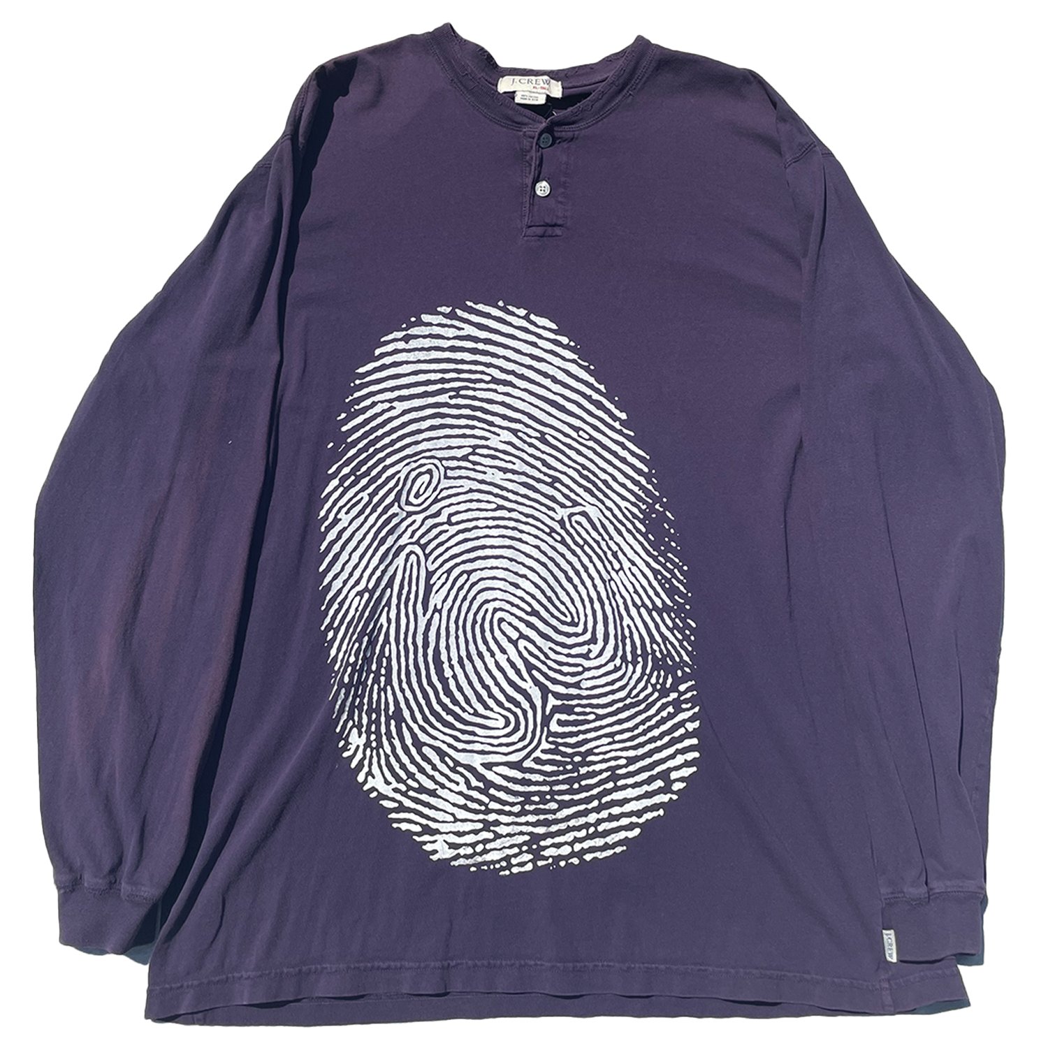 Size XL-Tall/2XL. Vintage J-Crew longsleeve tee with thumbprint graphic screenprinted on front.
